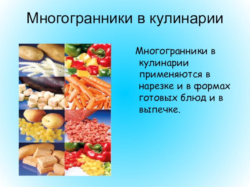 Многогранники в кулинарии применяются в нарезке и в