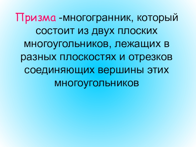 Слайд 35Призма -многогранник, который состоит из двух плоских многоугольников, лежащих в разных