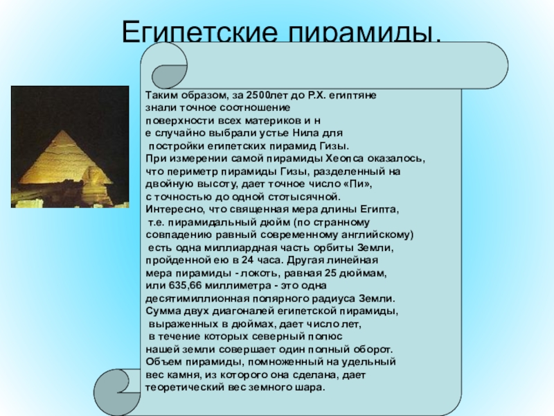При измерении самой пирамиды Хеопса оказалось,