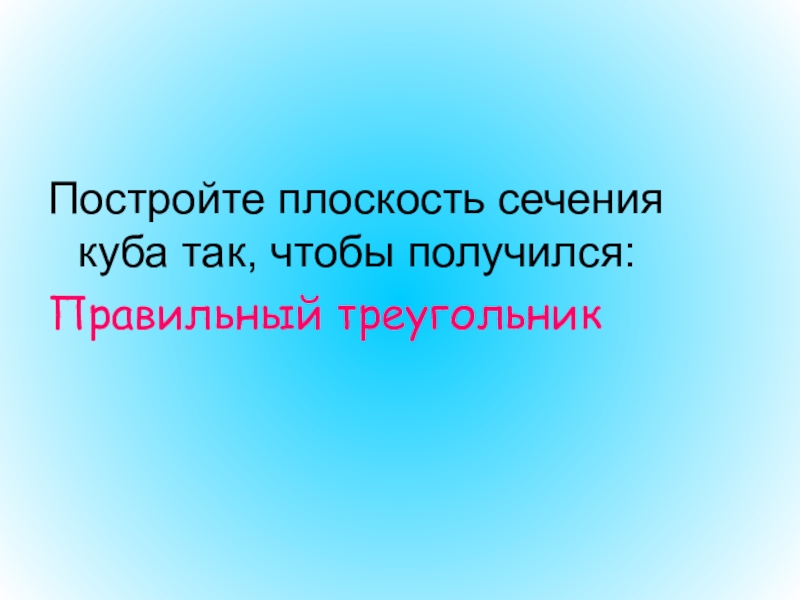 Слайд 14Постройте плоскость сечения куба так, чтобы получился:
