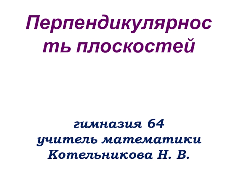 Слайд 1 Перпендикулярность плоскостей гимназия 64 учитель математики Котельникова Н. В.