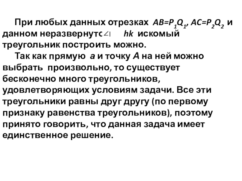 Док-во: По построению AB=P1Q1, AC=P2Q2, A= hk.