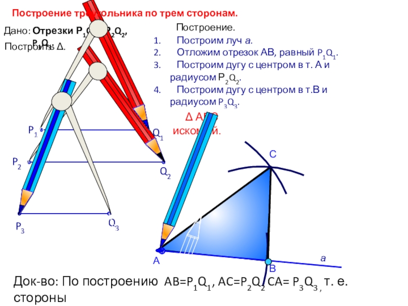 Док-во: По построению AB=P1Q1, AC=P2Q2 CA= P3Q3 , т. е. стороны