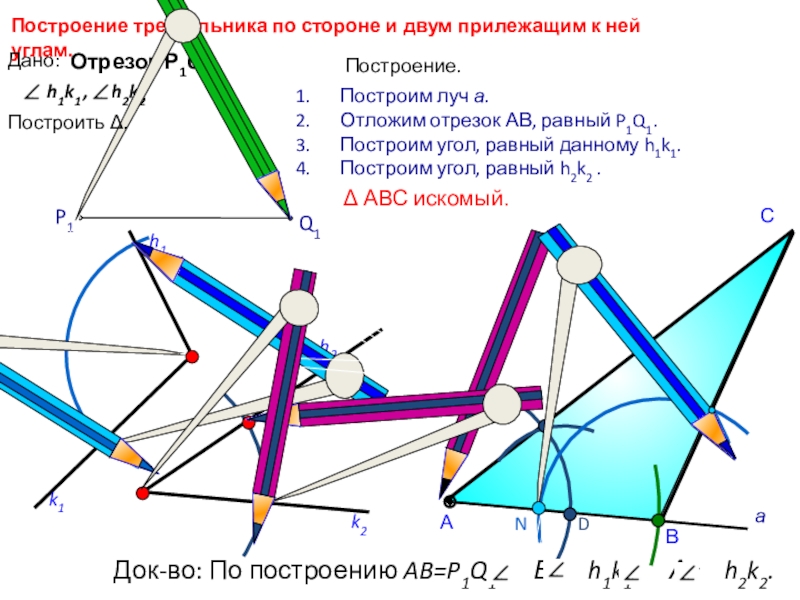 Док-во: По построению AB=P1Q1, В= h1k1, А= h2k2.