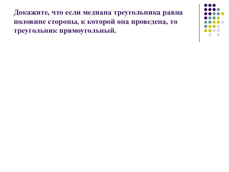 Слайд 6Докажите, что если медиана треугольника равна половине стороны, к которой она