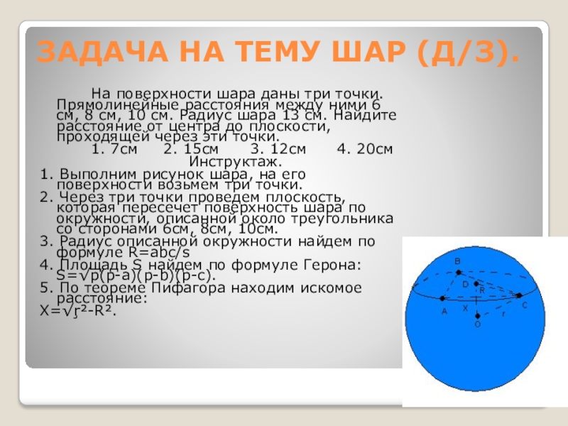 Слайд 23ЗАДАЧА НА ТЕМУ ШАР (Д/З).