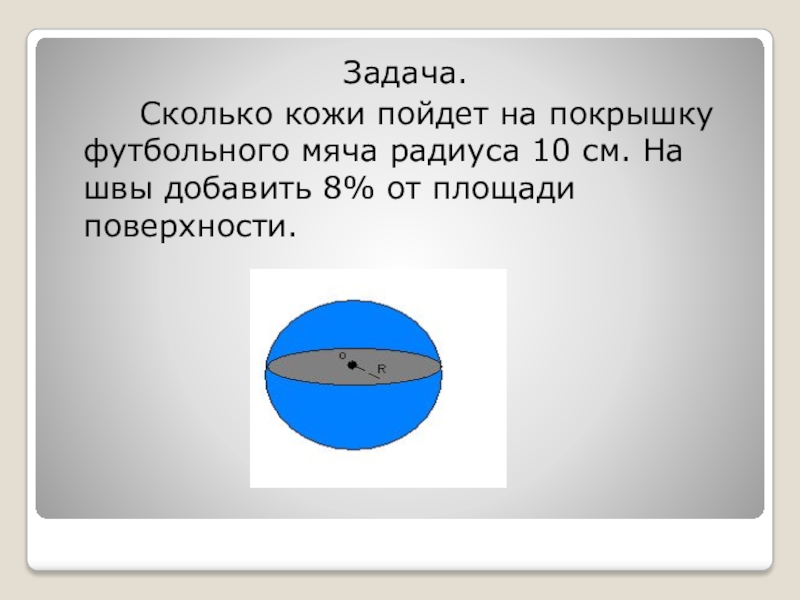 Сколько кожи пойдет на покрышку футбольного мяча радиуса 10 см. На