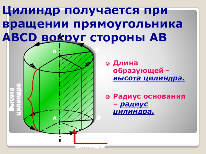 Слайд 4Цилиндр получается при вращении прямоугольника ABCD вокруг стороны AB