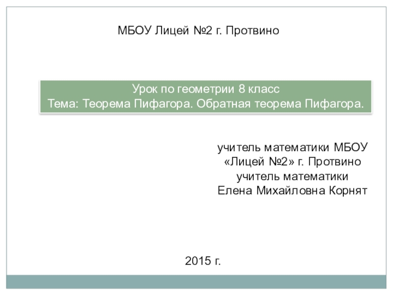 учитель математики МБОУ «Лицей №2» г. Протвино учитель математики