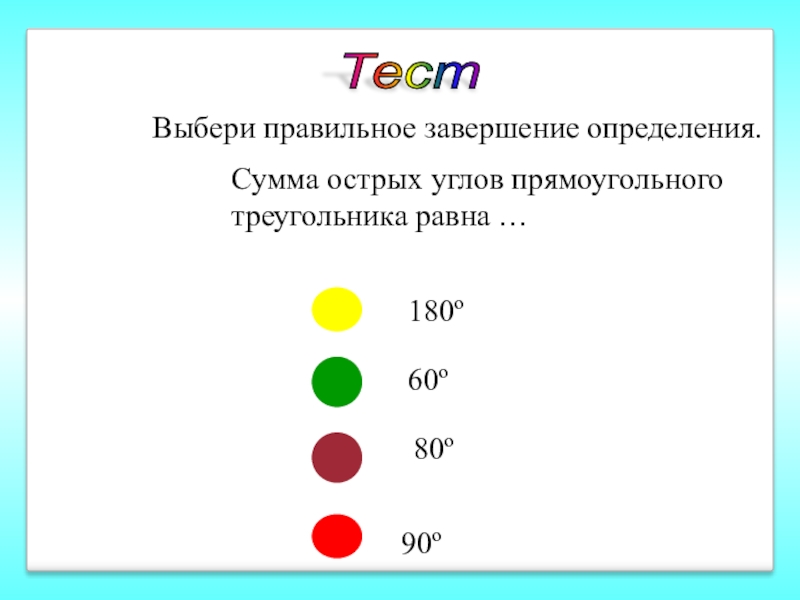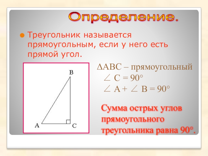 Сумма острых углов прямоугольного треугольника равна 90°.