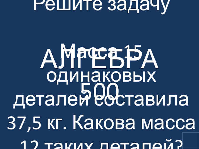 Решите задачу Масса 15 одинаковых деталей составила 37,5 кг. Какова масса 12