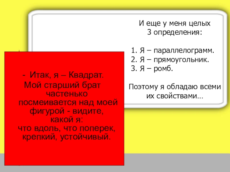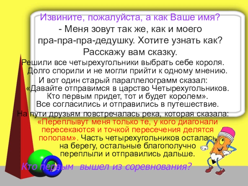Решили все четырехугольники выбрать себе короля. Долго спорили и не могли прийти к одному мнению.