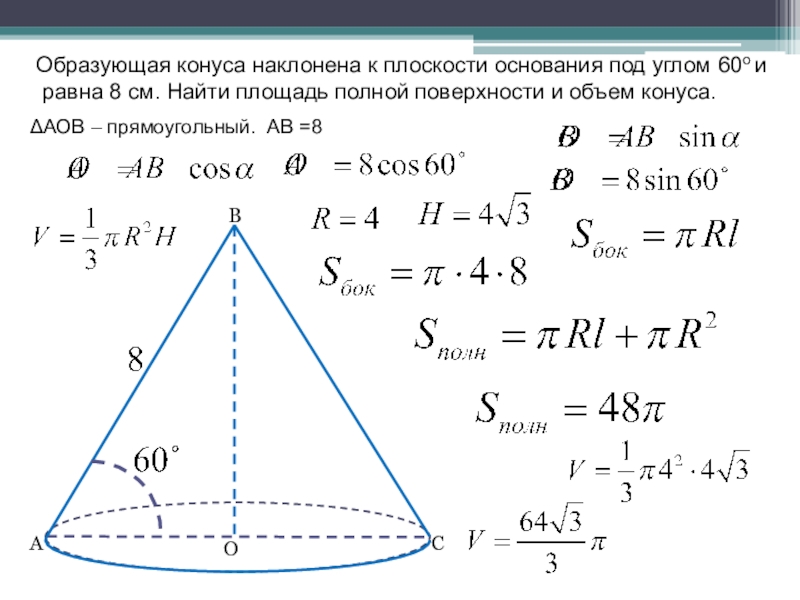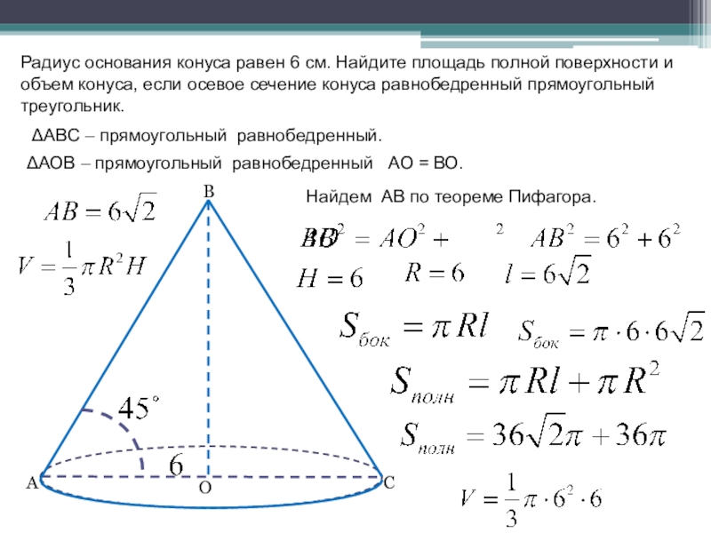 ΔАОВ – прямоугольный равнобедренный АО = ВО.
