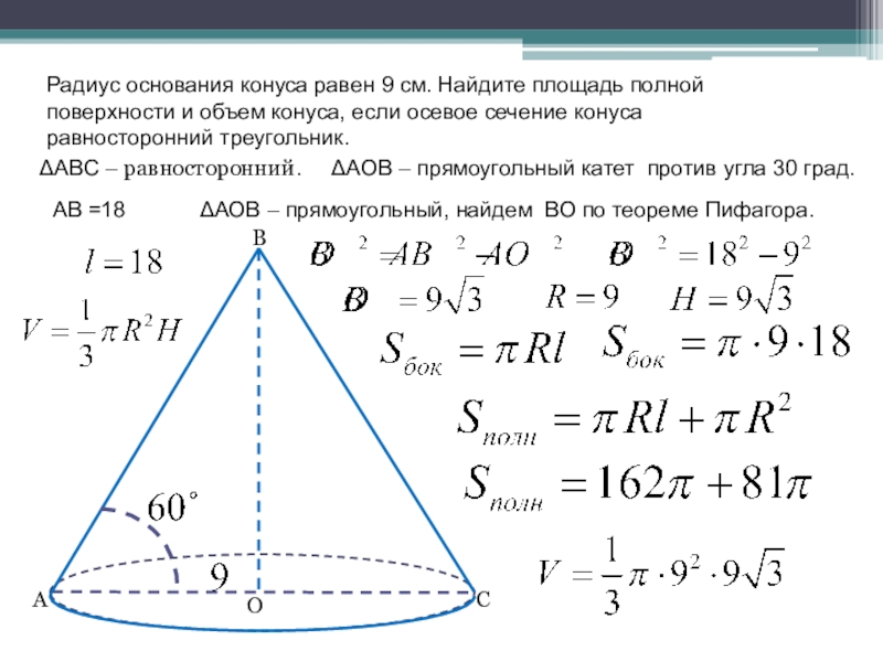 ΔАОВ – прямоугольный катет против угла 30 град.