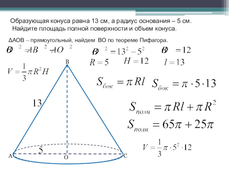 ΔАОВ – прямоугольный, найдем ВО по теореме Пифагора.