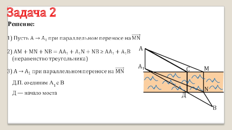 Задача 2Решение:   Д.П. соединим А1 с ВД — начало мостаACMNBД