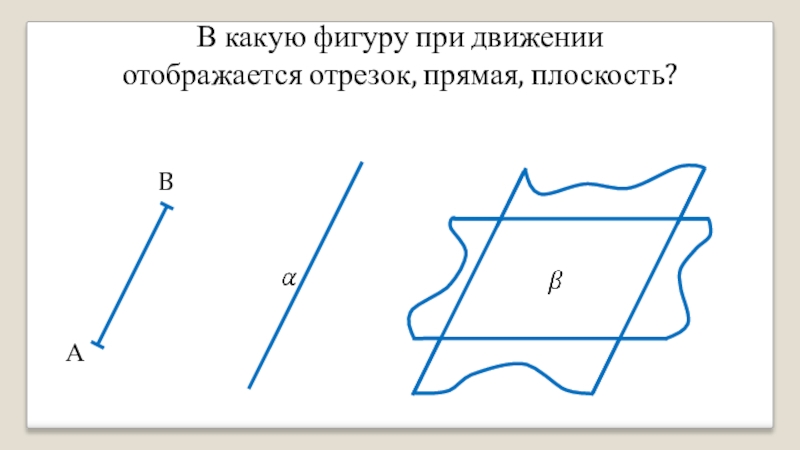 В какую фигуру при движении отображается отрезок, прямая, плоскость?АB