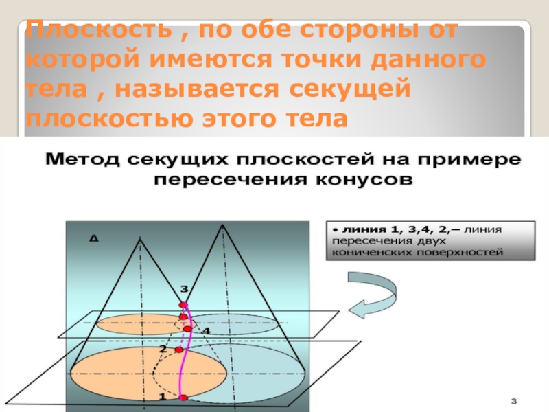 Плоскость , по обе стороны от которой имеются точки данного тела , называется секущей плоскостью этого тела