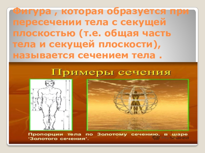 общая часть тела и секущей плоскости), называется сечением тела .