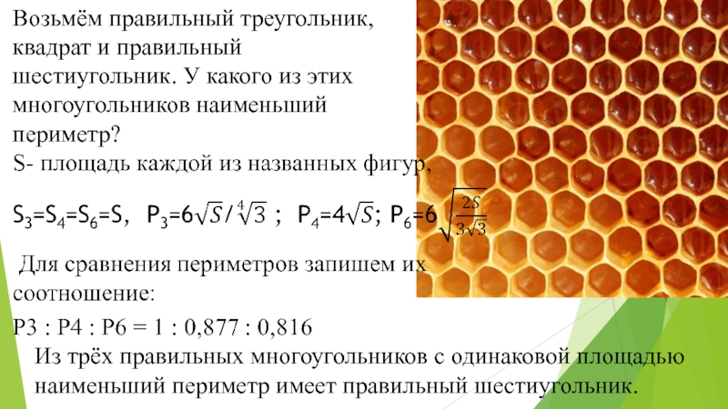 Возьмём правильный треугольник, квадрат и правильный шестиугольник. У какого из этих многоугольников наименьший периметр?