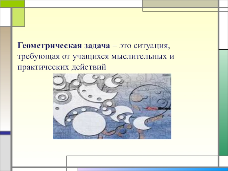 Слайд 3Геометрическая задача – это ситуация, требующая от учащихся