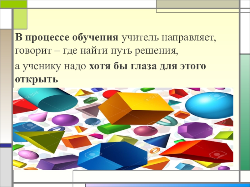 Слайд 8В процессе обучения учитель направляет, говорит – где найти путь решения,