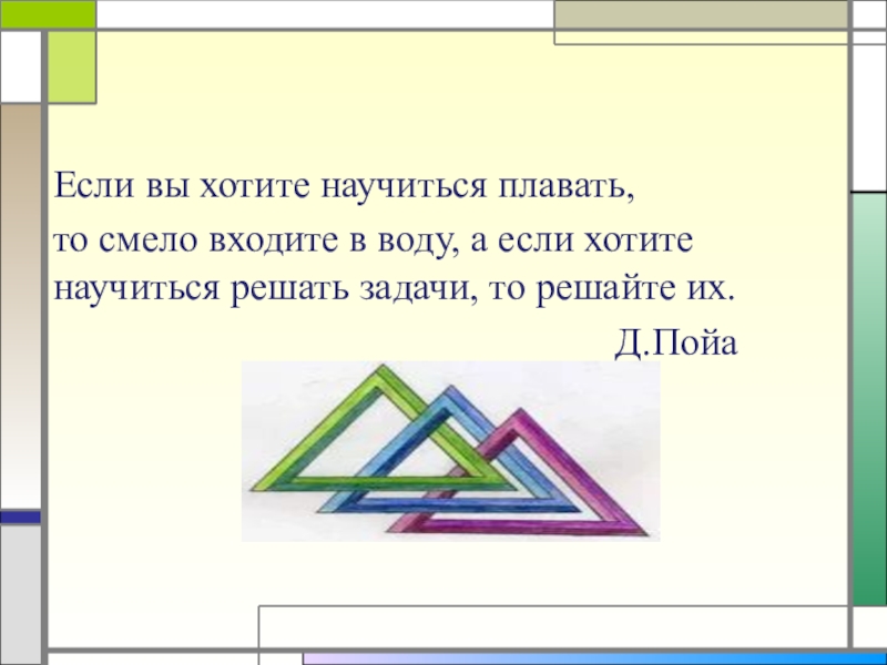 Если вы хотите научиться плавать, то смело входите в воду, а если хотите научиться решать задачи, то решайте их.
