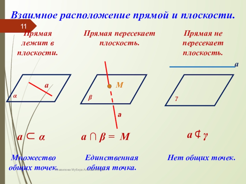 Взаимное расположение прямой и плоскости