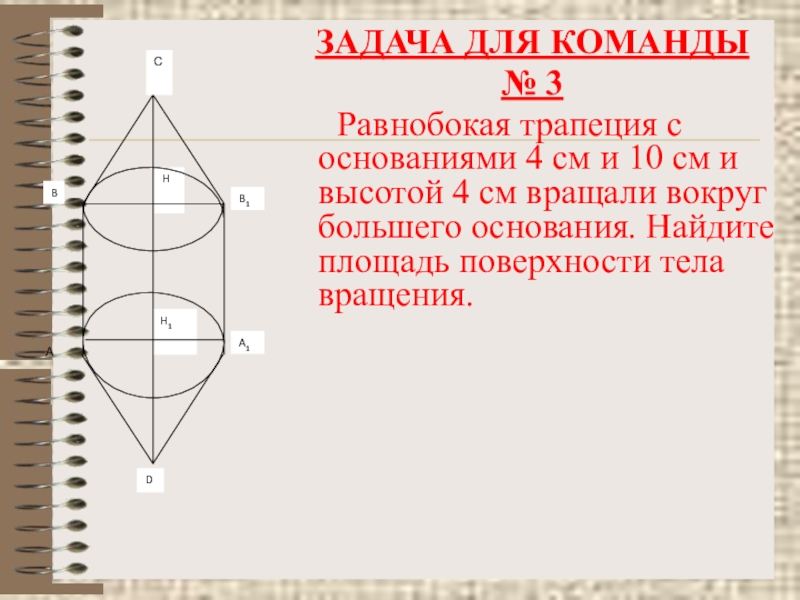 4 см и 10 см и высотой 4 см вращали вокруг большего основания. Найдите площадь поверхности тела вращения.