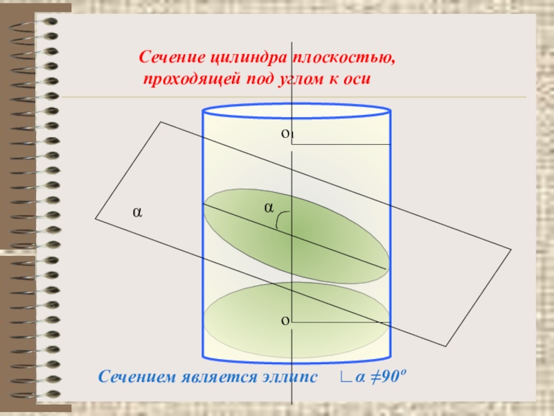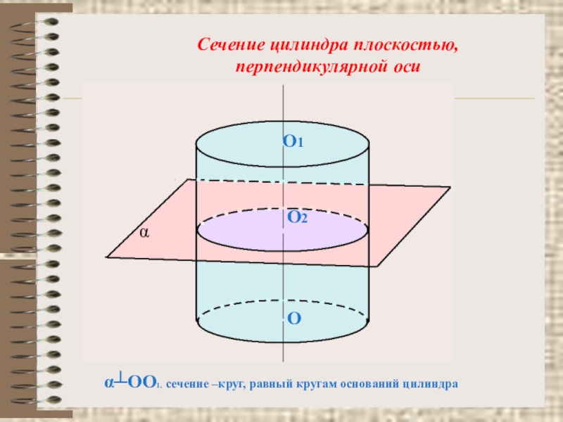 Слайд 13α┴OO1, сечение –круг, равный кругам оснований цилиндра