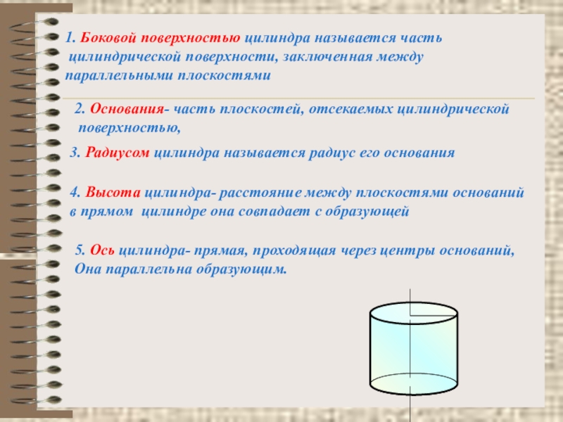 5. Ось цилиндра- прямая, проходящая через центры оснований,