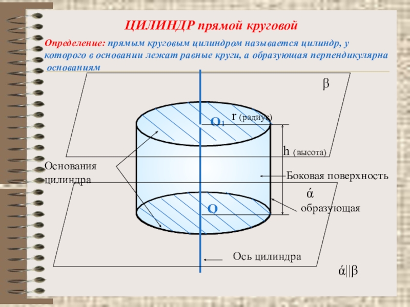 Определение: прямым круговым цилиндром называется цилиндр, у