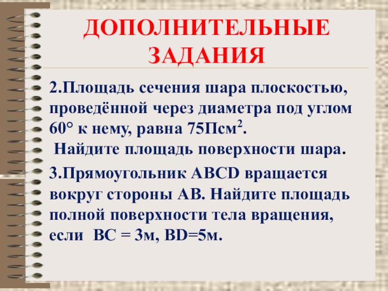 2.Площадь сечения шара плоскостью, проведённой через диаметра под углом 60°
