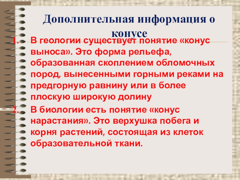 В биологии есть понятие «конус нарастания». Это верхушка побега и корня растений, состоящая из клеток образовательной ткани.