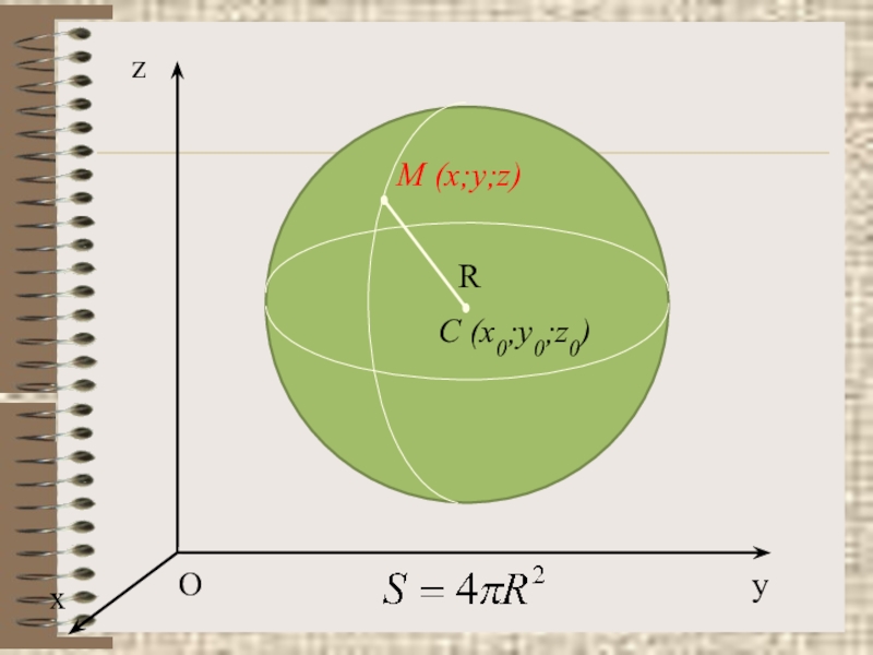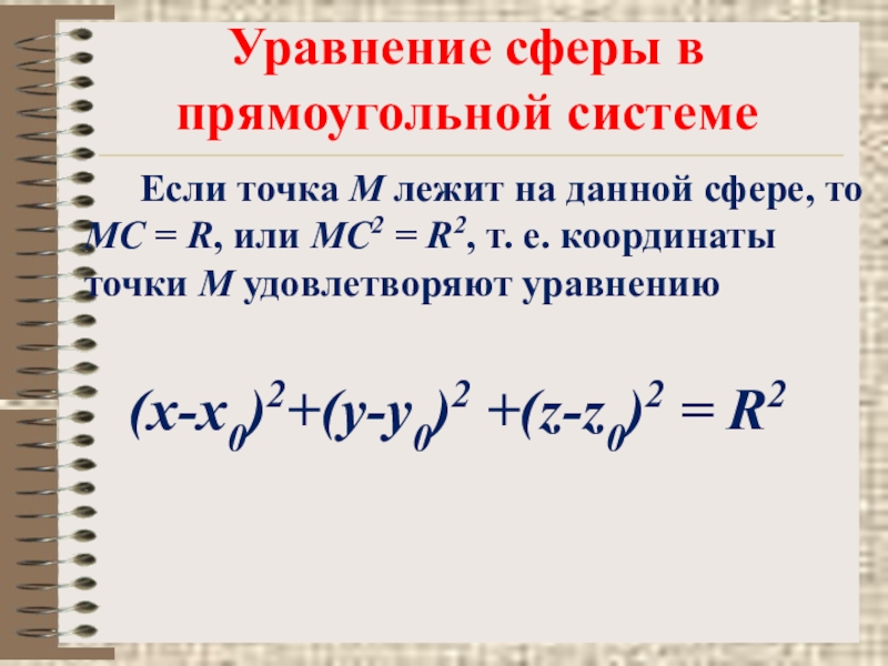 сфере, то МС = R, или МС2 = R2, т. е. координаты точки М удовлетворяют уравнению