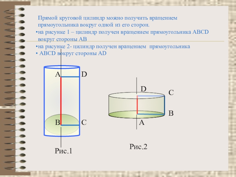 на рисунке 1 – цилиндр получен вращением прямоугольника АВСD