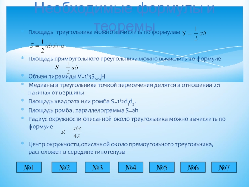 Необходимые формулы и теоремы
