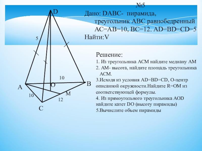 5. Вычислите объем пирамиды