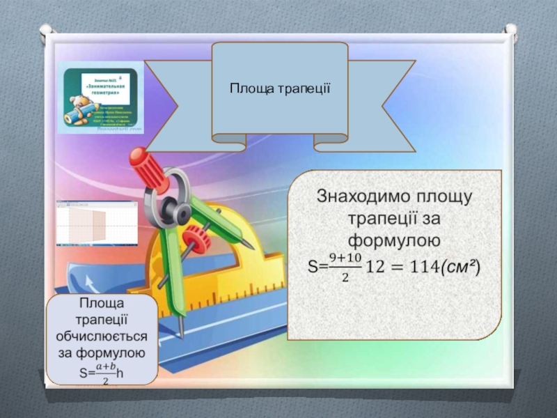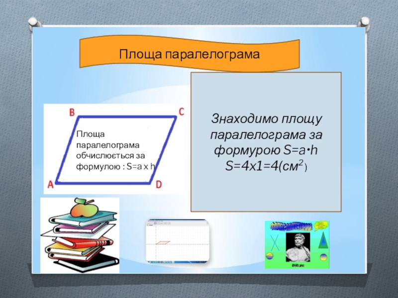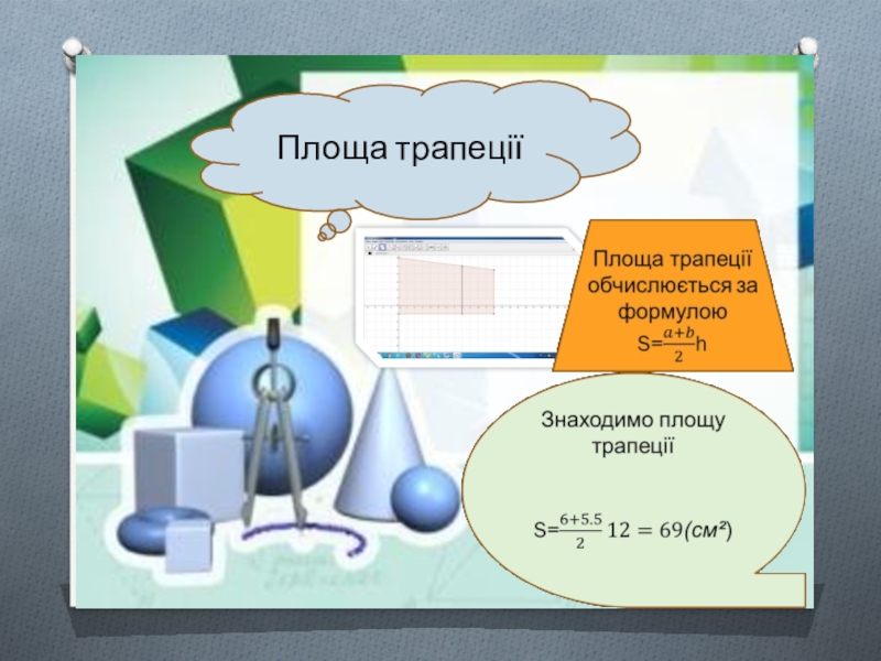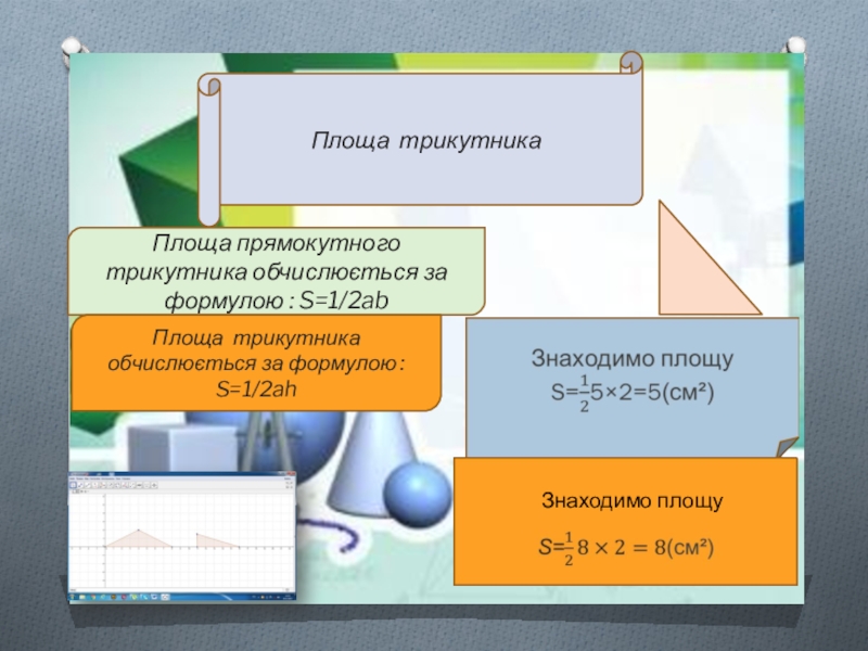 Площа трикутника обчислюється за формулою : S=1/2ah