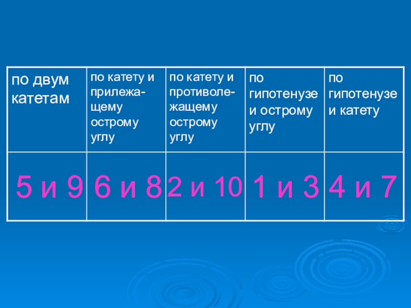 ПРИЗНАКИ равенства прямоугольных треугольников