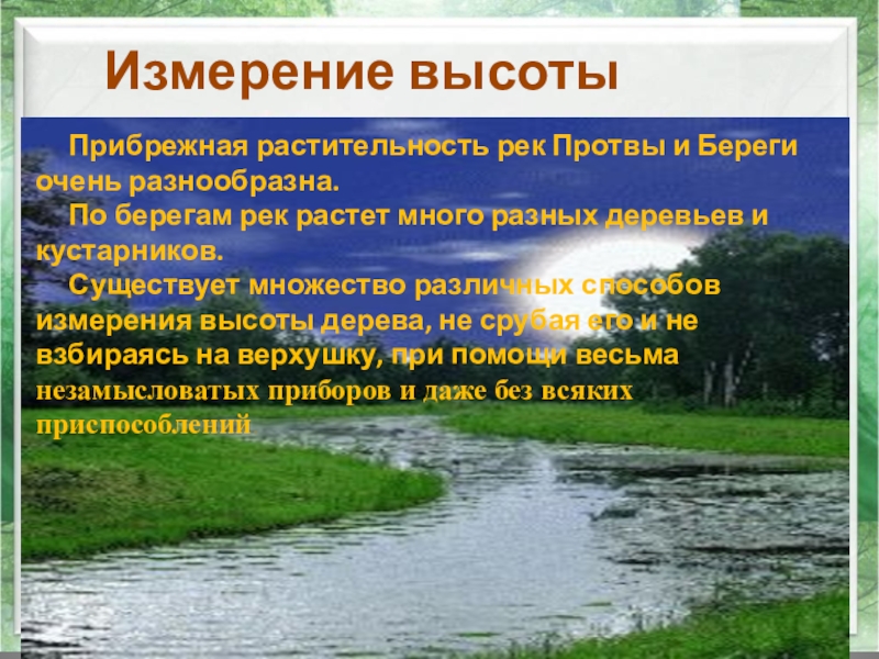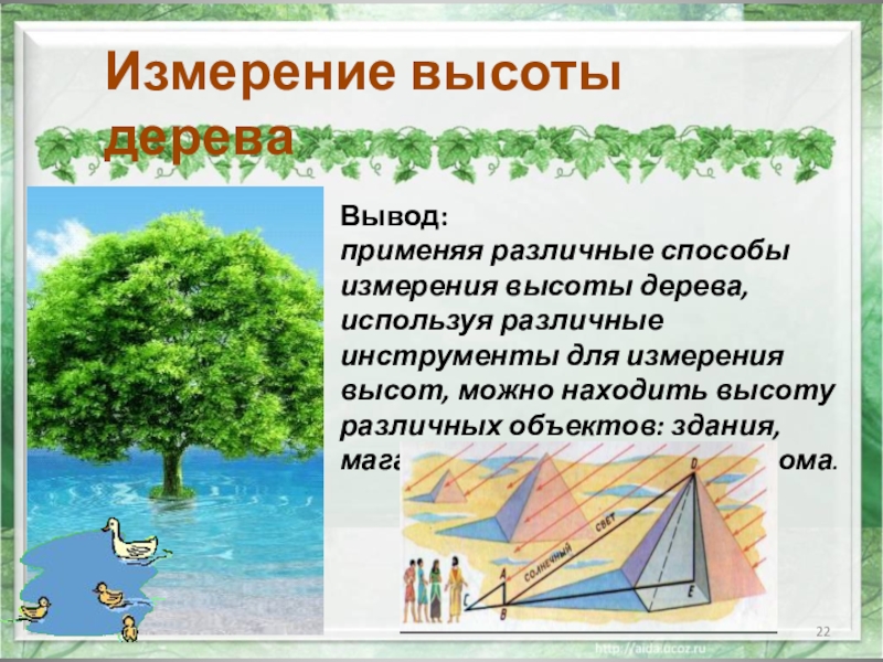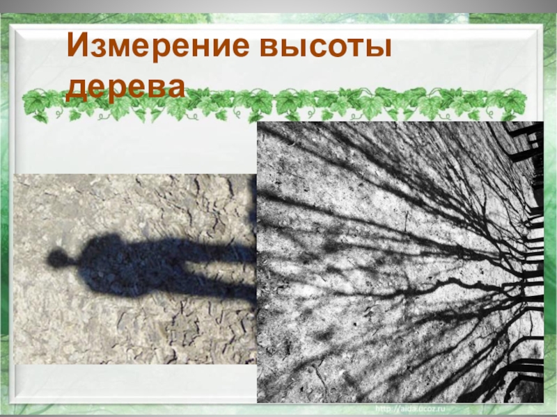 Существует множество различных способов измерения высоты дерева, не срубая его и не взбираясь на верхушку, при помощи весьма незамысловатых приборов и даже без всяких приспособлений.