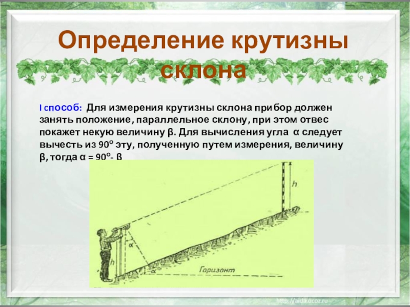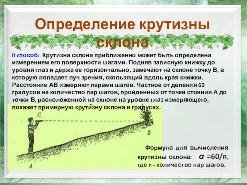 II cпособ: Крутизна склона приближенно может быть определена измерением