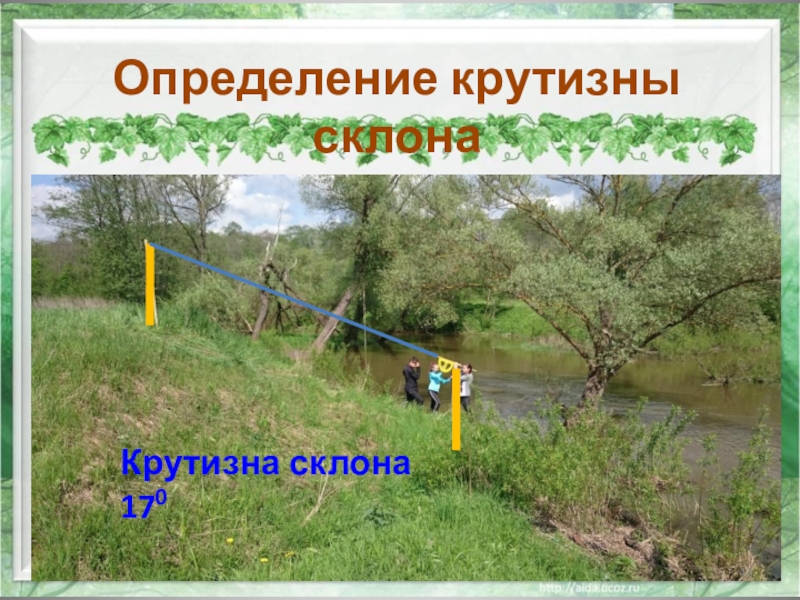 I cпособ: Для измерения крутизны склона прибор должен занять