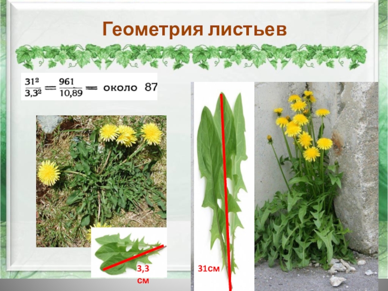 Рассмотрим листья одуванчика. У одуванчика, выросшего в