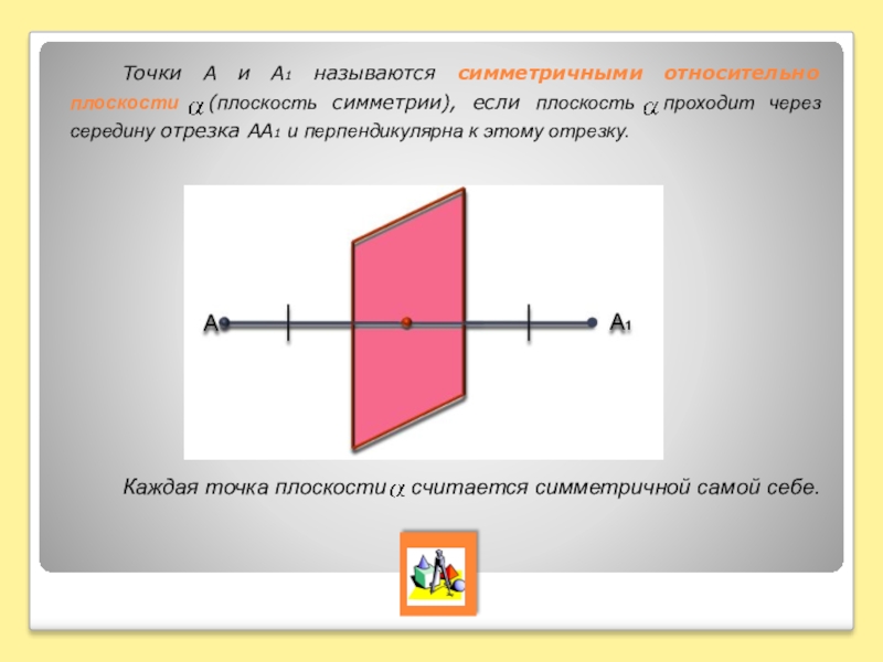 Точки А и А1 называются симметричными относительно плоскости (плоскость симметрии), если