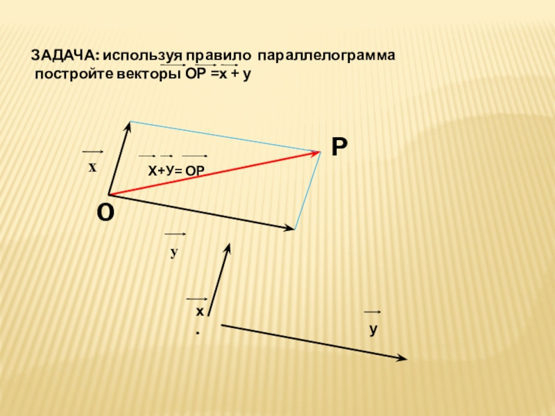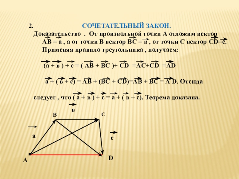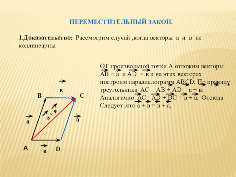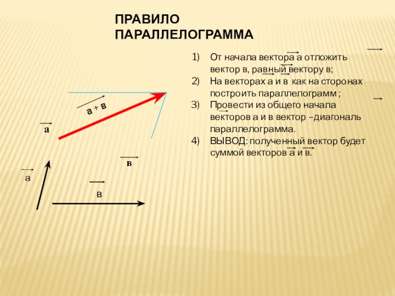 АВ = а и АD = в и на этих векторах построим параллелограмм АВСD. По правилу треугольника АС = АВ + АD = а + в.
