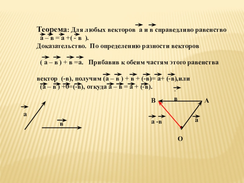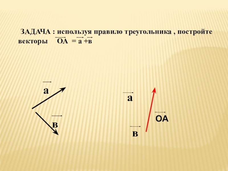 Отложим от точки О вектор ОМ = а и от точки М вектор МА = в, тогда