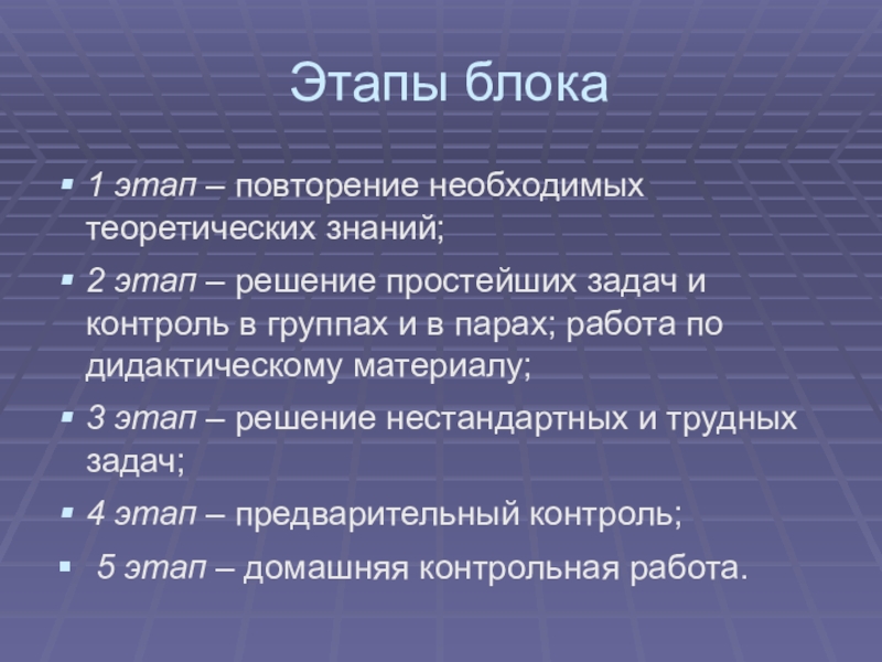 простейших задач и контроль в группах и в парах; работа по дидактическому материалу;