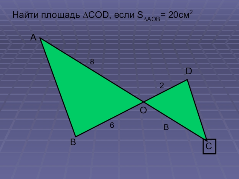 Слайд 11Найти площадь ∆COD, если S∆AOB= 20см2