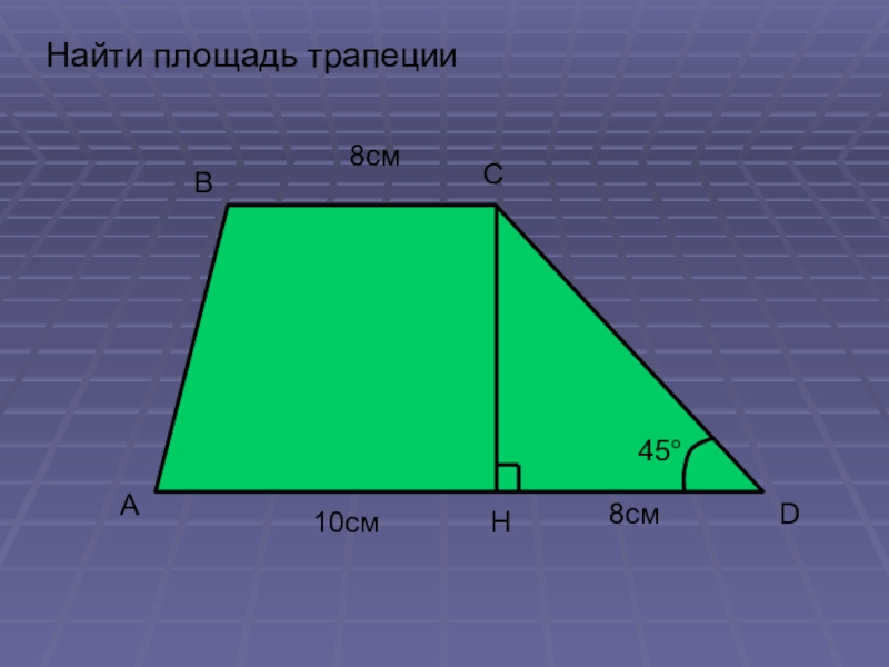 4. Острый угол прямоугольной трапеции равен 45o. Определить ее среднюю линию, если меньшая диагональ и большая боковая сторона равны между собой и меньшее основание равно 12 см.